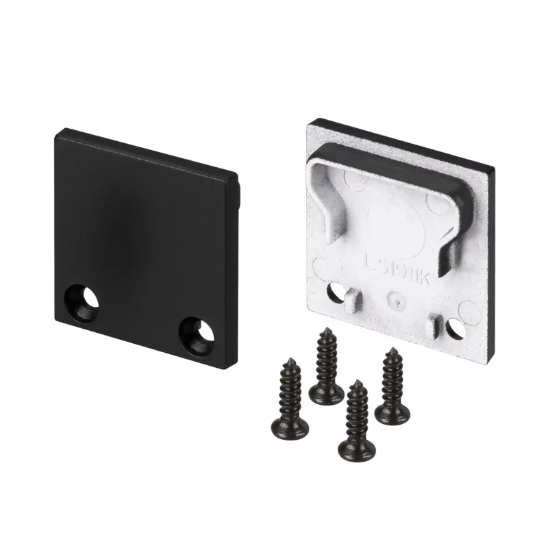 Черные глухие заглушки (2 шт.) для профиля SL-LINE-2011M с квадратным экраном. Придают законченный вид светильнику, а также защищают светодиодную ленту от внешних факторов (грязи, пыли и прочего).