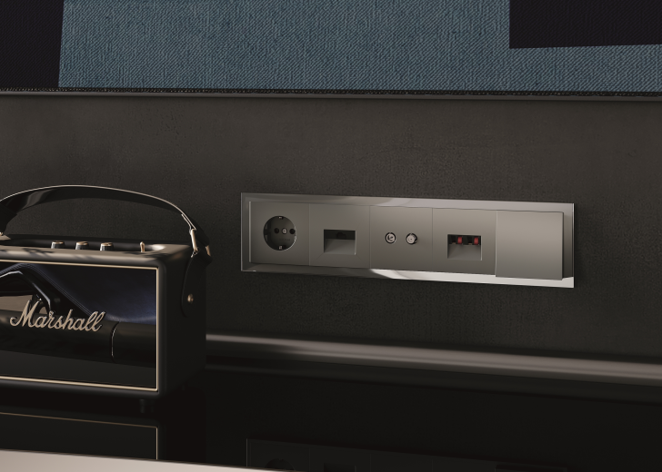 Розетка акустическая встраиваемая VOLTUM S70 4-местная, (графит)