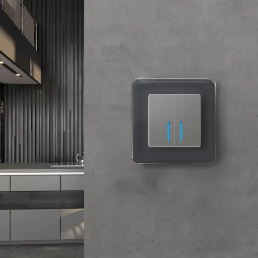 Двухклавишный выключатель с подсветкой (Графит рифленый)