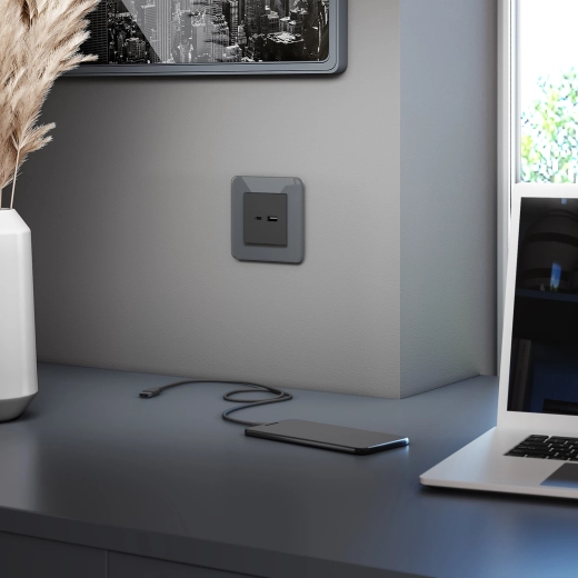 Розетка электрическая Werkel со шторками с зарядным устройством USB-A x 2 (Графит рифленый)