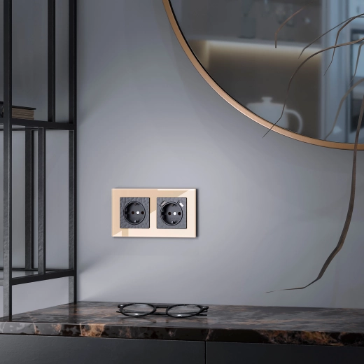 Двухклавишный переключатель с подсветкой (Айвори матовый)