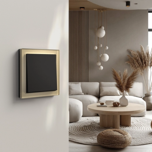 Одноклавишный выключатель в комплекте с рамкой (Базальт)