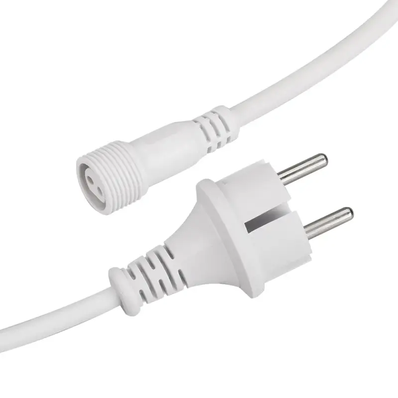 Шнур питания специально разработан для подключения светодиодных гирлянд "Тающая сосулька". В комплект входит шнур питания с вилкой европейского стандарта (IP44) и разъем для подключения к гирлянде. Оболочка из белого ПВХ придает ему элегантный внешний вид. Длина провода составляет 1,5 метра, что позволяет удобно располагать гирлянду.