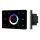 Встраиваемая сенсорная панель в "итальянском" стиле, изготовленная из высококачественного стекла, защищенного от появления царапин. Изделие позволяет осуществлять основные функции управления светом: включение/выключение, регулировка яркости, управление цветом (RGBW), сохранение предустановок для 4 световых зон. Панель совместима с диммерами и контроллерами SMART по радиоканалу 2.4G (количество привязываемых диммеров и контроллеров не ограничено) и может управлять DMX-диммерами по проводной шине DMX512. Выходной сигнал DMX соответствует стандартному протоколу DMX512 и совместим с оборудованием DMX любого производителя. Панель чёрного цвета, питание от сети 230В. Габариты устройства 120х80х37 мм, встраивается в стандартную монтажную коробку.