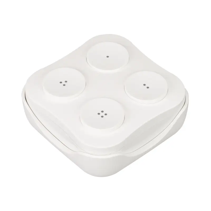Накладная кнопочная панель белого цвета, изготовленная из пластика. Предназначена для управления одноцветными источниками света (ШИМ) с помощью кнопок. Основные выполняемые функции: включение и выключение света, регулировка яркости. Удобное и точное управление с помощью эргономичных кнопок. Изделие применяется в качестве четырёхзонного пульта дистанционного управления диммерами и релейными модули серий TUYA-***-WF и TY-***-WF, поддерживающими управление по радиоканалу 433MHz. Не требует питания, имеет встроенный кинетический источник питания. Габариты панели 54x54x25 мм, корпус выполнен из пластика. Устройство устанавливается на любую поверхность, к которой возможно прикрутить монтажную базу панели. Магнитный холдер в комплекте.
