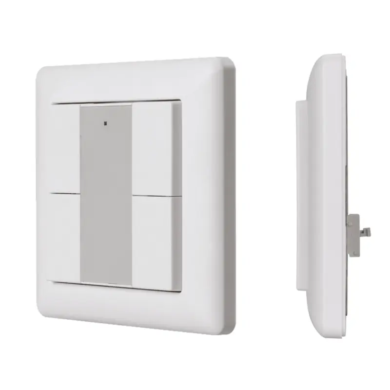Встраиваемая пластиковая панель белого цвета с кнопочным управлением, предназначенная для работы с контроллерами в системах управления светом DALI-2. Напрямую не управляет исполнительными устройствами. Все команды от панели обрабатываются только мастер-контроллерами DALI. Позволяет программировать 4 кнопки и 8 светодиодных индикатора статусов. Удобное и точное управление при помощи отдельных механических кнопок для каждой функции. Питание от шины DALI. Габариты устройства составляют 81х81х22.5 мм. Панель совместима с декоративными рамками ведущих мировых производителей (GIRA, JUNG, BERKER, MERTEN). Стандартная рамка входит в комплект поставки.