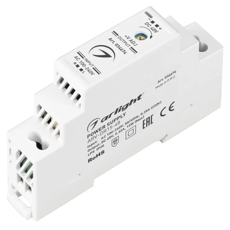 Блок питания ARV-DR15-48 (48V, 0.32A, 15W) (Arlight, IP20 DIN-рейка)