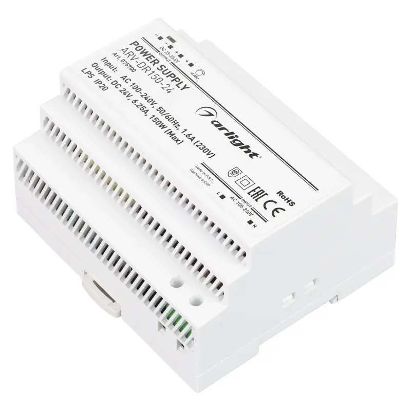 Блок питания ARV-DR150-24 (24V, 6.25A, 150W) (Arlight, IP20 DIN-рейка)