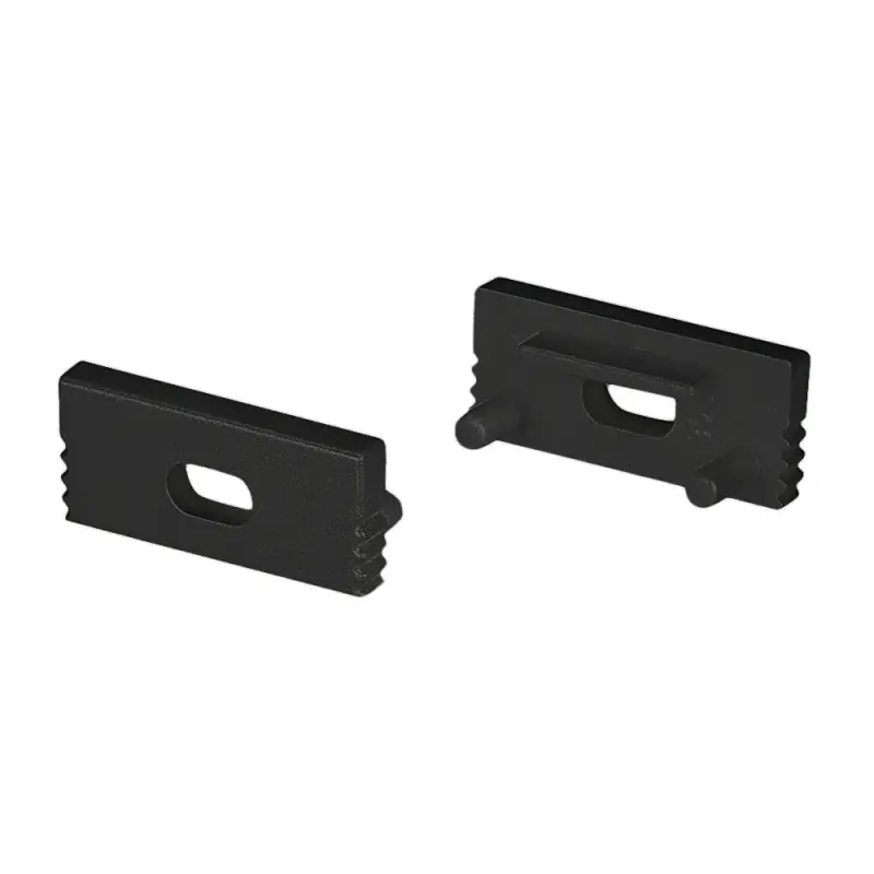 Черные заглушки (2 шт.) с отверстием для профиля SL-SLIM-H7. Придают законченный вид светильнику, а также защищают светодиодную ленту от внешних факторов (грязи, пыли и прочего). Отверстие в заглушке позволяет вывести кабель питания светодиодной ленты.