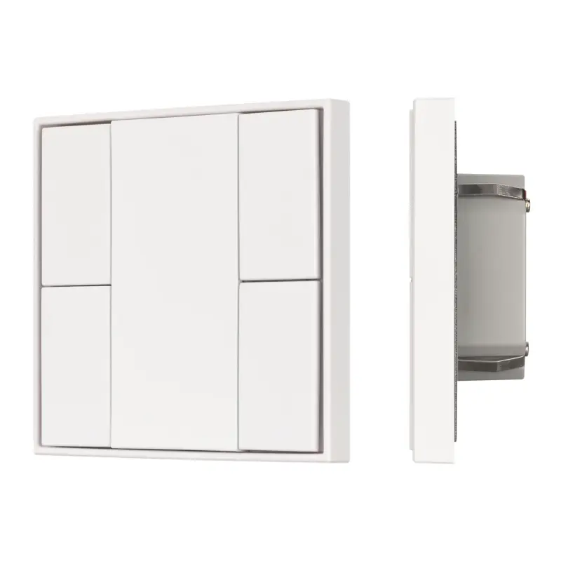 Встраиваемая пластиковая панель белого цвета с кнопочным управлением, предназначенная для включения и выключения световых сцен в системах управления светом KNX. Позволяет осуществлять включение/выключение, диммирование, управление шторами и жалюзи, управлять сценами. Поддерживает управление с помощью 4 настраиваемых кнопок. Устройство совместимо с исполнительными устройствами стандарта KNX, в том числе, мировых производителей ABB, SCHNEIDER ELECTRIC, SIEMENS, ZENNIO и другими. Удобное и точное управление при помощи отдельных механических кнопок для каждой функции. Питание от шины KNX. Габариты устройства составляют 80x80x26.6 мм, установка в стандартную монтажную коробку. Пластиковый корпус, цвет белый.