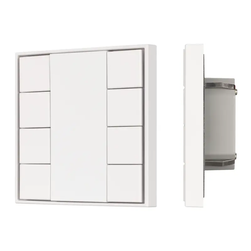 Встраиваемая пластиковая панель белого цвета с кнопочным управлением, предназначенная для включения и выключения световых сцен в системах управления светом KNX. Позволяет осуществлять включение/выключение, диммирование, управление шторами и жалюзи, управлять сценами. Поддерживает управление с помощью 8 настраиваемых кнопок. Устройство совместимо с исполнительными устройствами стандарта KNX, в том числе, мировых производителей ABB, SCHNEIDER ELECTRIC, SIEMENS, ZENNIO и другими. Удобное и точное управление при помощи отдельных механических кнопок для каждой функции. Питание от шины KNX. Габариты устройства составляют 80x80x26.6 мм, установка в стандартную монтажную коробку. Пластиковый корпус, цвет белый.