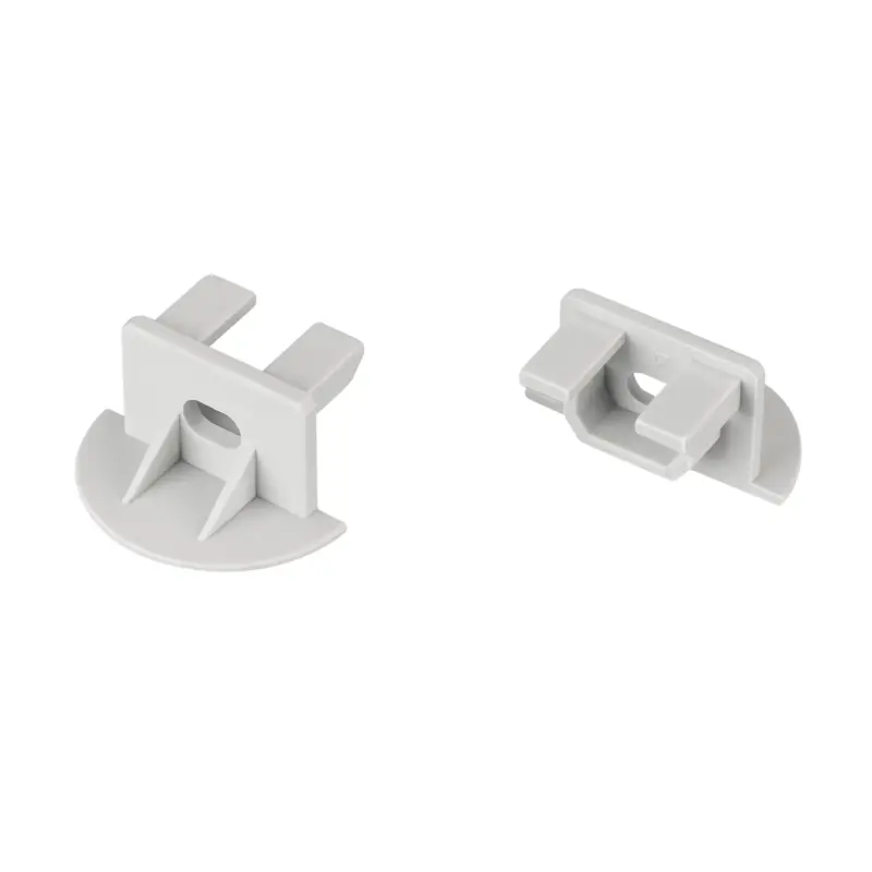 Серые полукруглые заглушки с отверстием (2 шт.) для профиля PDS-FS. Придают законченный вид светильнику, а также защищают светодиодную ленту от внешних факторов (грязи, пыли и прочего). Отверстие в заглушке позволяет вывести кабель питания светодиодной ленты.