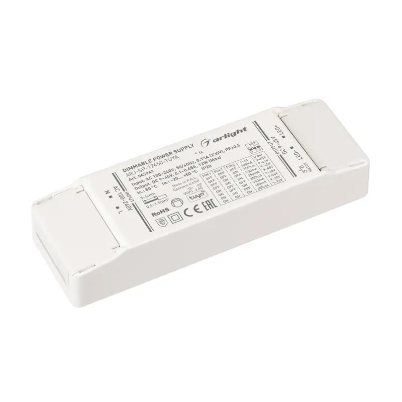 Блок питания ARJ-SP-12450-TUYA (12W, 9-45V, 0.1-0.45A, WiFi, 2.4G) (Arlight, IP20 Пластик, 5 лет)