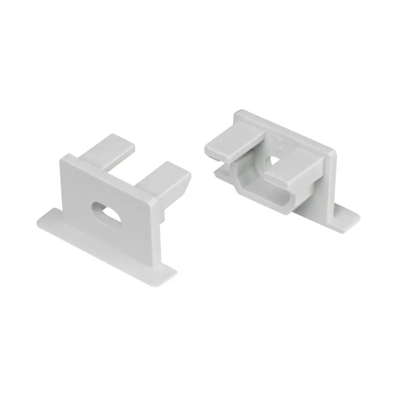 Серые прямоугольные заглушки с отверстием (2 шт.) для профиля PDS-FS. Придают законченный вид светильнику, а также защищают светодиодную ленту от внешних факторов (грязи, пыли и прочего). Отверстие в заглушке позволяет вывести кабель питания светодиодной ленты.