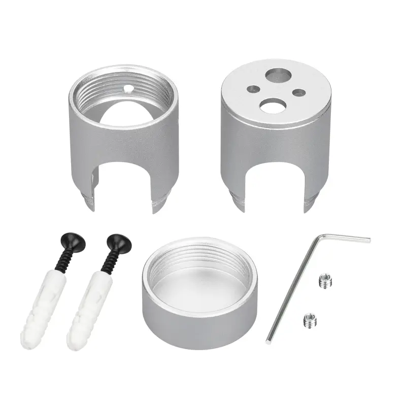 Цилиндрическое крепление, изготовленное из нержавеющей стали, подходит для герметичной ленты серии MOONLIGHT D18. Серебряное крепление в форме цилиндра обеспечивает надежную фиксацию ленты, а также подходит для любых отвесных поверхностей. В комплекте вы найдете основание с отверстием под неон (крепится к поверхности), среднее звено крепления с отверстием под неон, крышку крепления (соединяется со средним звеном), а также 2 шурупа с дюбелями. Габариты крепления в сборке 34x34x76 мм. Крепление поможет создать уникальное дизайнерское решение для вашего проекта.