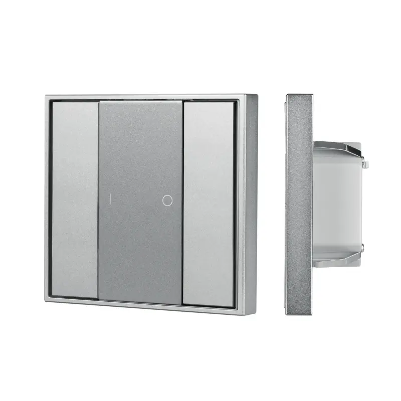 Встраиваемая металлическая панель серого цвета с кнопочным управлением, предназначенная для управления одноцветными светодиодными лентами, светильниками и другими источниками света в системах управления светом DALI. Позволяет включать/выключать свет и менять его яркость в 1 группе либо в режиме широковещателя (Broadcast). Установка номера группы и сцен выполняется переключателями на задней стороне панели. Устройство совместимо с диммерами стандарта DALI. Передача команд от панели к диммерам выполняется по общей двухпроводной шине DALI. Удобное и точное управление при помощи отдельных механических кнопок для каждой функции. Питание от шины DALI. Габариты устройства составляют 80x80x26,6 мм