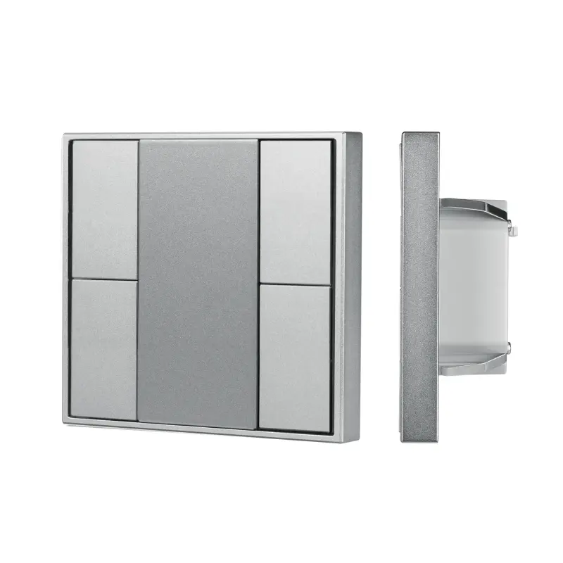 Встраиваемая металлическая панель серого цвета с кнопочным управлением, предназначенная для работы с контроллерами в системах управления светом DALI-2. Напрямую не управляет исполнительными устройствами. Все команды от панели обрабатываются только мастер-контроллерами DALI. Позволяет программировать 4 кнопки и 8 светодиодных индикатора статусов. Удобное и точное управление при помощи отдельных механических кнопок для каждой функции. Питание от шины DALI. Габариты устройства составляют 80х80х26.6 мм.