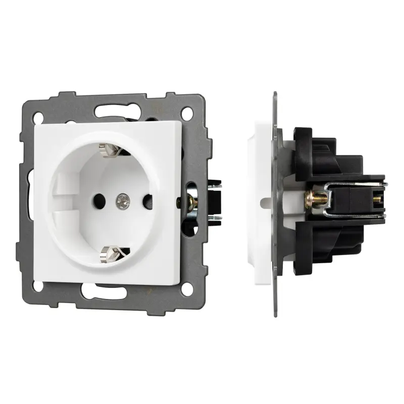 Механизм розетки с заземлением совместим с рамками серий OMALI/AKYRI/PERIO/XSILO. Скрытый тип монтажа позволяет гармонично встроить в интерьер любого современного дизайн-проекта. Видимая часть механизма выполнена из высококачественного пластика белого цвета. Контактная часть присоединяется при помощи винтовых зажимов, а усиленные распорные лапки надежно фиксируют механизм в установочном подрозетнике.