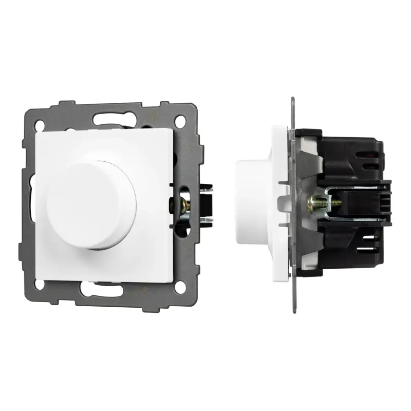 Механизм регулировки света совместим с рамками серий OMALI/AKYRI/PERIO/XSILO. Механизм позволяет регулировать степень интенсивности свечения, а так же включать/выключать подключенное освещение. Скрытый тип монтажа позволяет гармонично встроить в интерьер любого современного дизайн-проекта. Видимая часть механизма выполнена из высококачественного пластика белого цвета. Контактная часть присоединяется при помощи винтовых зажимов, а усиленные распорные лапки надежно фиксируют механизм в установочном подрозетнике.