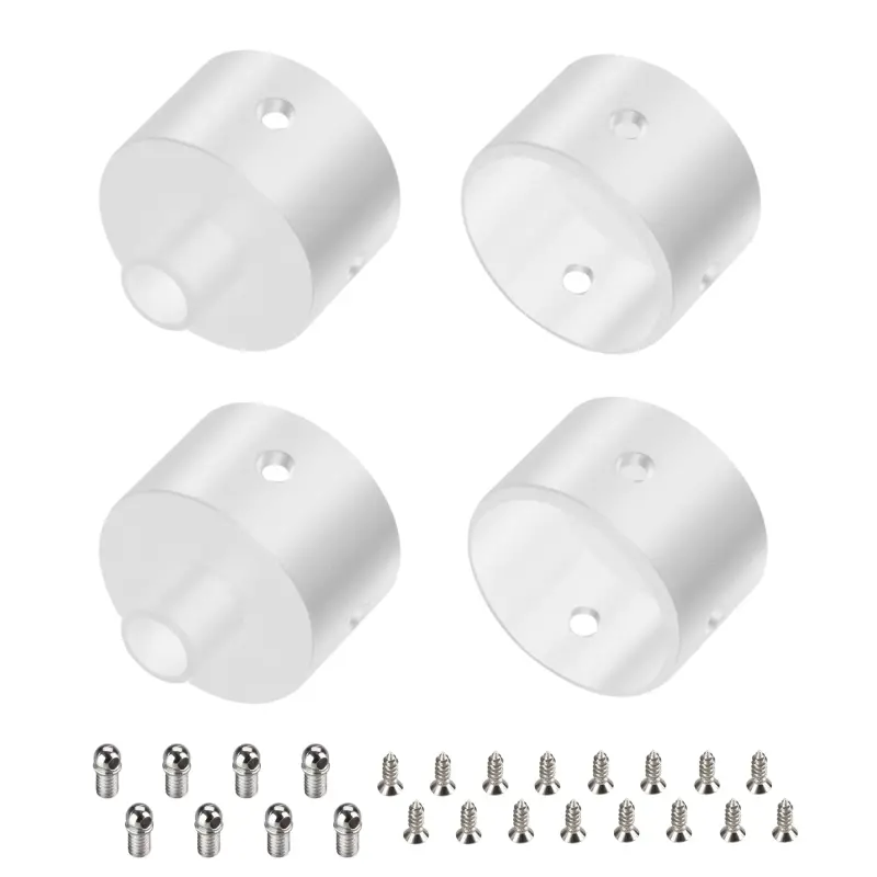 Металлические заглушки с отверстием (4 шт.) белого цвета для профилей WPH-FLEX-D22, WPH-FLEX-ROPE-D22. Придают законченный вид светильнику, а также защищают светодиодную ленту от внешних факторов (грязи, пыли и прочего). Отверстие в заглушке позволяет вывести кабель питания светодиодной ленты.