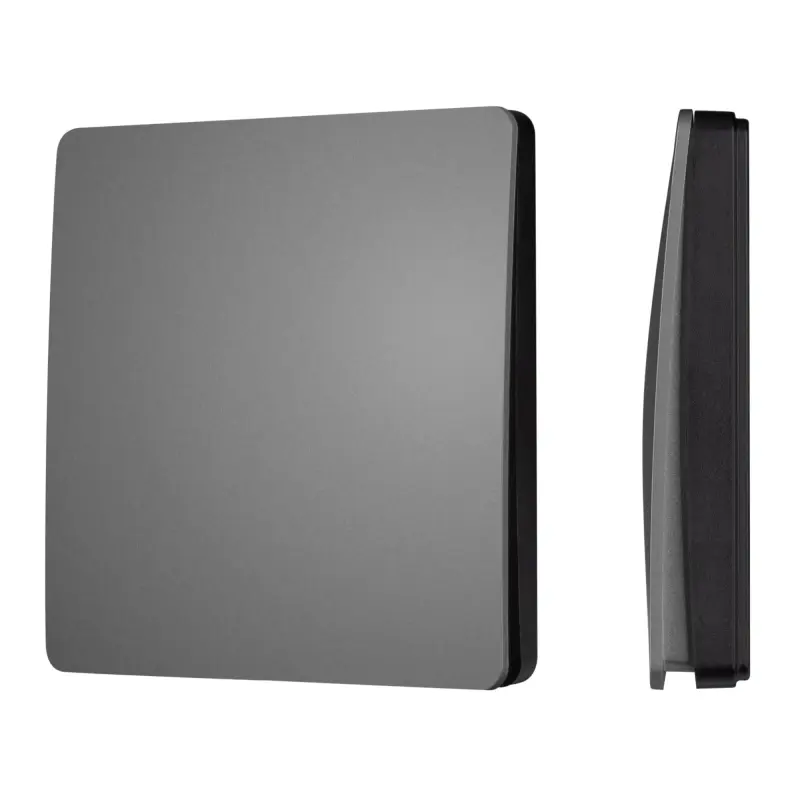 Накладная кнопочная панель серого цвета, изготовленная из пластика. Предназначена для управления одноцветными источниками света (ШИМ) с помощью кнопок. Основные выполняемые функции: включение и выключение света, регулировка яркости. Удобное и точное управление с помощью эргономичных кнопок. Изделие применяется в качестве пульта дистанционного управления диммерами и релейными модулями серий TUYA-***-WF и TY-***-WF, поддерживающими управление по радиоканалу 433MHz. Не требует питания, имеет встроенный кинетический источник питания. Габариты панели 86х86х16.5 мм, корпус выполнен из пластика. Устройство устанавливается на любую поверхность, к которой возможно прикрутить монтажную базу панели.