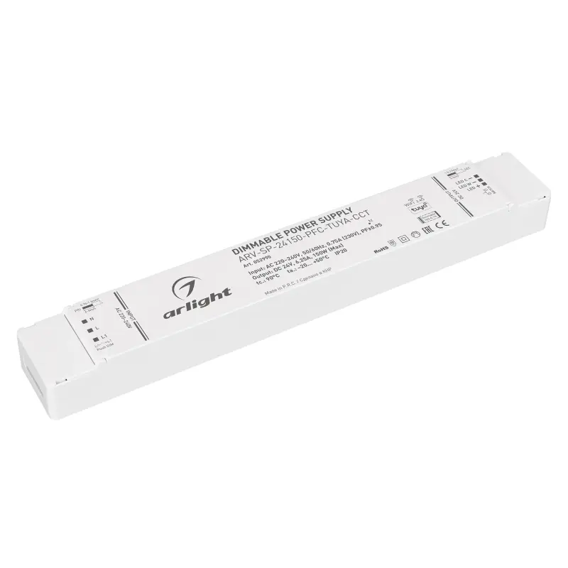 Блок питания ARV-SP-24150-PFC-TUYA-CCT (24V, 6.25A, 150W, WiFi, 2.4G) (Arlight, IP20 Пластик, 5 лет)