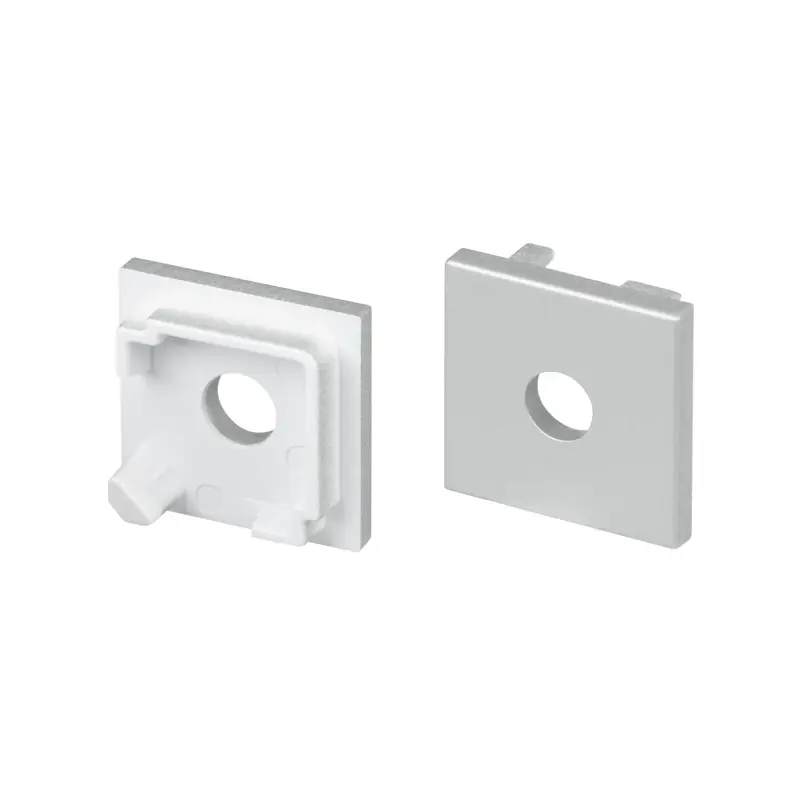 Заглушки (2 шт.) с отверстием для профиля SL-KANT-H16-S10 с угловым экраном. Придают законченный вид светильнику, а также защищают светодиодную ленту от внешних факторов (грязи, пыли и прочего). Отверстие в заглушке позволяет вывести кабель питания светодиодной ленты.