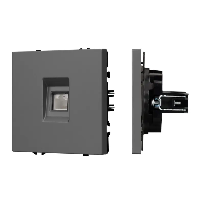 Механизм компьютерной розетки совместим с рамками серии NOBE, создает утонченный минималистичный вид. Скрытый тип монтажа позволяет гармонично встроить в интерьер любого современного дизайн-проекта. Видимая часть механизма выполнена из высококачественного пластика серого цвета и имеет Soft-Touch покрытие, что придает изделию приятные тактильные ощущения и стильный внешний вид.