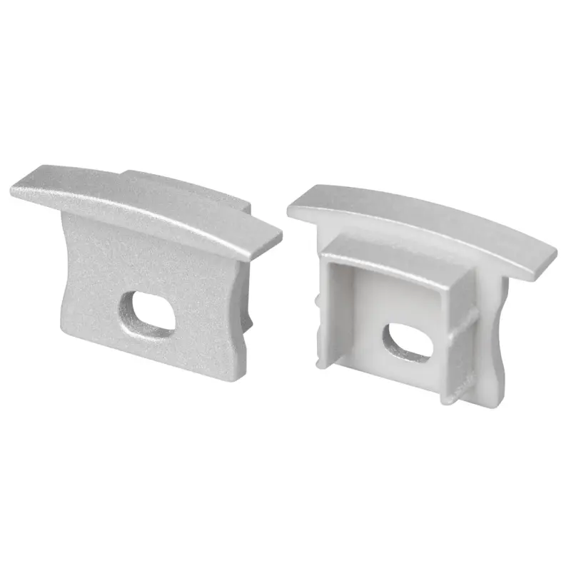 Заглушки серебристого цвета (2 шт.) с отверстием для профиля LINE-2315-F. Придают законченный вид светильнику, а также защищают светодиодную ленту от внешних факторов (грязи, пыли и прочего). Отверстие в заглушке позволяет вывести кабель питания светодиодной ленты.