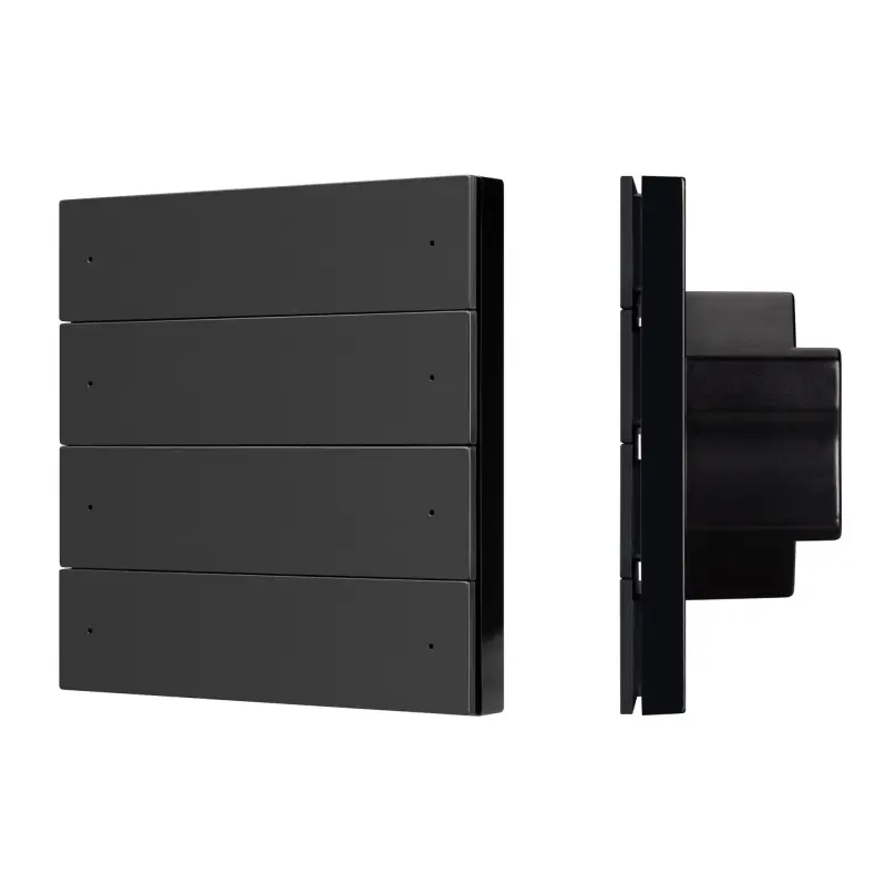 Встраиваемая пластиковая кнопочная панель черного цвета, предназначенная для управления сценами умного дома с помощью кнопок (при использовании конвертера Tuya/Zigbee). В сценах можно задействовать любые устройства умного дома (в том числе источники света) поддерживающие управление через платформу TUYA (при использовании соответствующего конвертера сигнала). Создание сцен доступно в приложении INTELLIGENT ARLIGHT, возможность программирования до 8 сцен. Протокол управления Zigbee 3.0. Питание сети 230В. Габариты изделия 86х86х35.5мм, встраивается в стандартную монтажную коробку. В комплекте набор наклеек для маркировки сценарных кнопок.