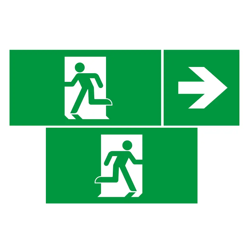 Набор сменных пиктограмм для аварийных панелей PROOF-L. Комплект из 3-х наклеек (2 наклейки 200х100мм и 1 наклейка 100х100мм) для указания любого из направлений. Для поклейки рекомендуется соблюдать инструкцию от аварийной панели PROOF.