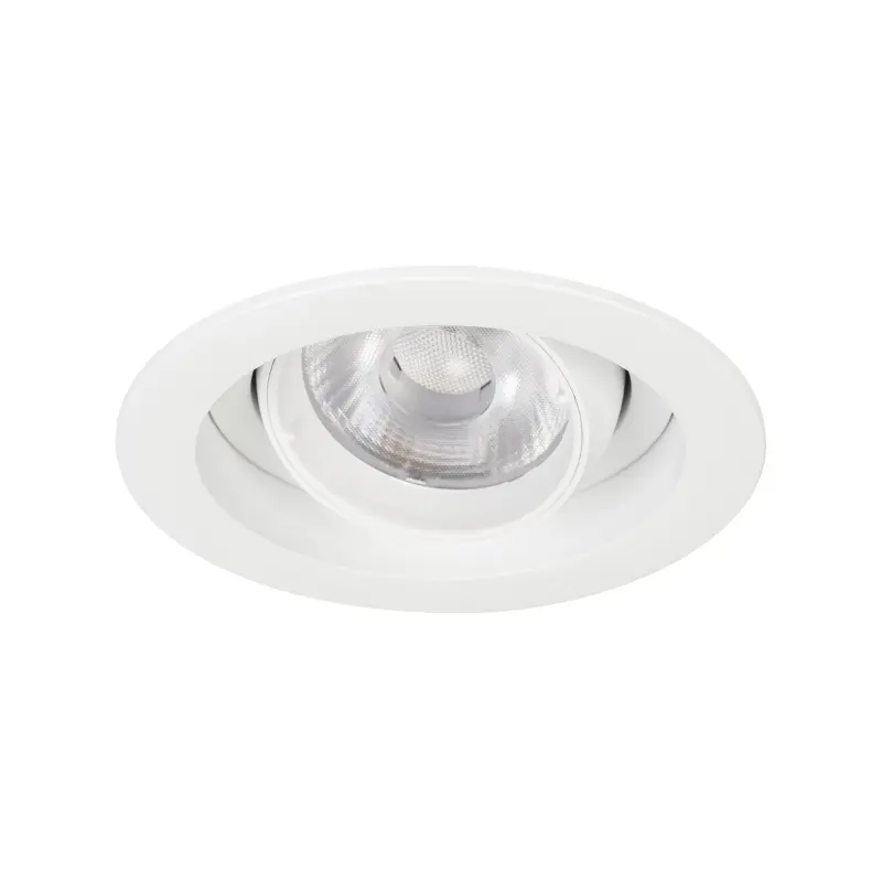 Встраиваемый карданный поворотный светильник с высоким индексом цветопередачи CRI>92 предназначен для создания качественного освещения. За основу поворотного механизма светильника взят принцип кардана – подвижное соединение двух колец, вложенных одно в другое. Световой модуль вращается вокруг своей оси на 360 градусов и отклоняется от горизонта на 30 градусов, что позволяет с лёгкостью регулировать направление пучка света и его концентрацию на определенной зоне. Особая конфигурация корпуса из алюминия оригинально смотрится в интерьере и позволяет эффективно отводить тепло. Светильник с углом рассеивания 40 градусов отлично подходит как для локальной акцентной подсветки витрин, прилавков магазинов, бутиков и стендов выставочных залов, так и для общего освещения. Легко устанавливается с помощью пружин в монтажное отверстие потолка. В комплекте поставляется драйвер, что позволяет безопасно и быстро подключать светильник напрямую к сети переменного тока 230 В.