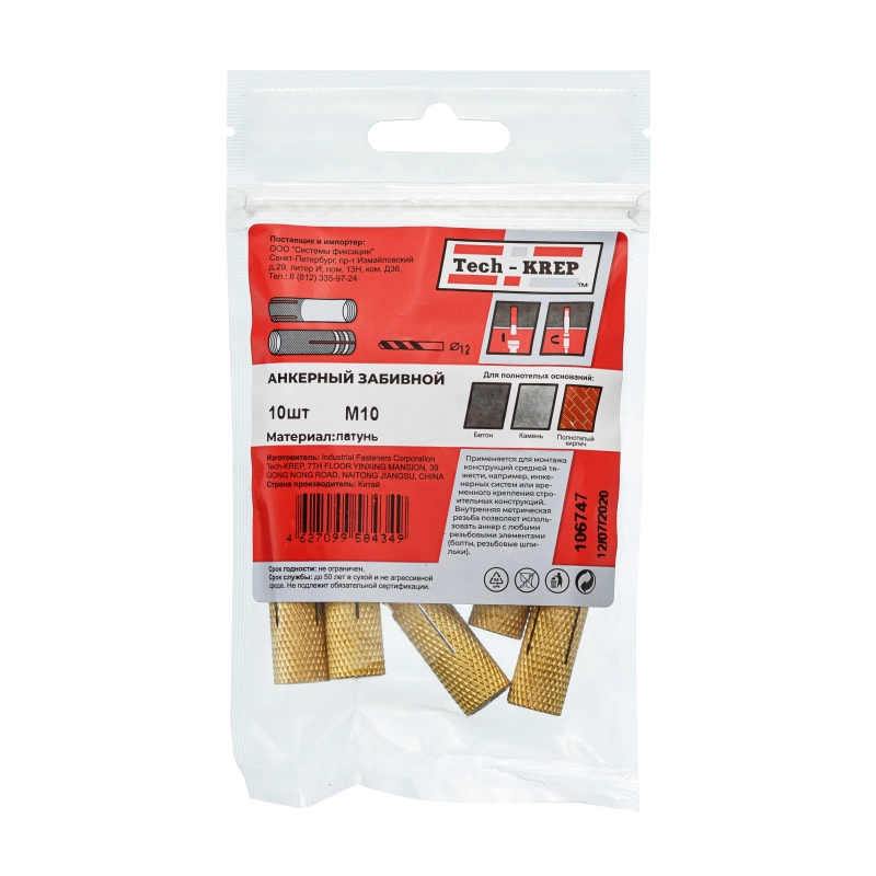 Анкер забиваемый латунный М10 (10 шт) - пакет Tech-Krep