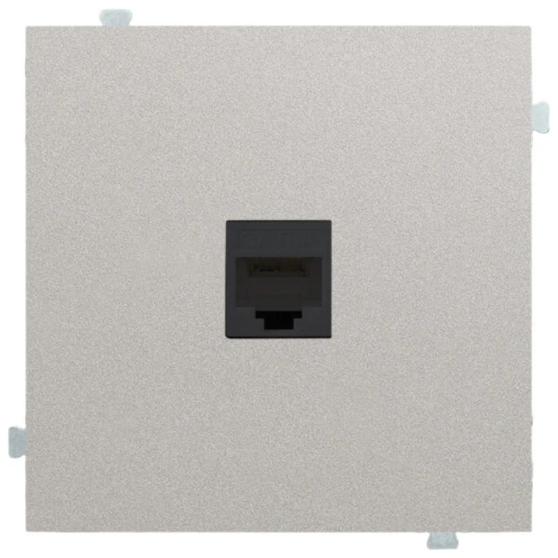Розетка компьютерная одиночная состоит из трех компонентов — суппорта для информационной розетки, лицевой панели для информационной розетки и модуля RJ45 кат. 5e. Суппорт розетки устанавливается в стандартный подрозетник с установочным диаметром 60 мм. Для окончательной сборки изделия необходимо добавить рамку с необходимым количеством постов.