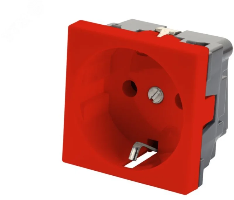 Розетка 2P+E немецкий стандарт 45 ? 45 мм, без шторок, красный