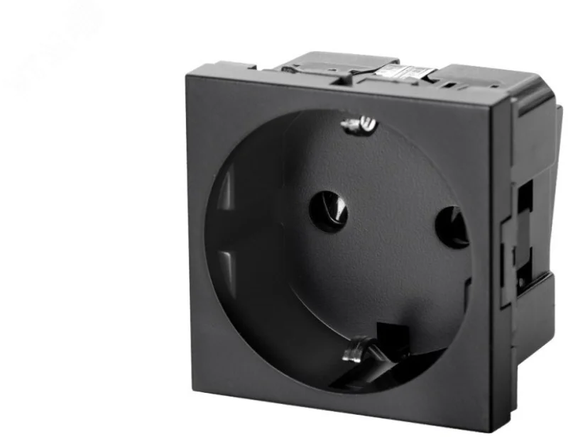 Розетка 2P+E немецкий стандарт 45 х 45 хм, с защитными шторками, графитовый черный
