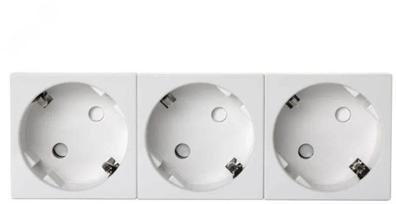 Розетка тройная 3 х 2P+E немецкий стандарт, с защитными шторками, с безвинтовым зажимом, 45 храдусов