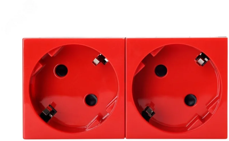 Розетка двойная 2 х 2P+E немецкий стандарт, с защитными шторками, с безвинтовым зажимом, 45 храдусов, красный