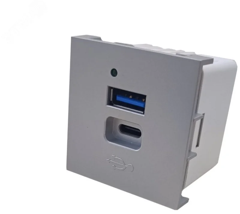 Зарядное устройство 2 х USB тип A/тип C, 20 Вт, 45 х 45 хм, серебристый