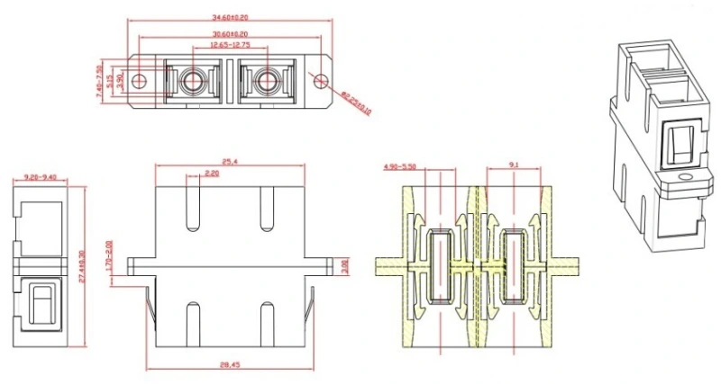 Hyperline FA-P11Z-DSC/DSC-N/BK-BG Оптический проходной адаптер SC-SC, MM, duplex, корпус пластиковый, бежевый, черные колпачки