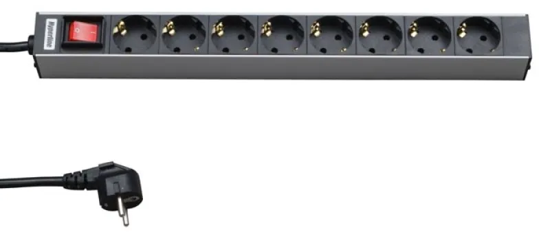 Hyperline SHT19-8SH-S-2.5EU Блок розеток для 19"" шкафов, горизонтальный, 8 универсальных розеток, 16A, выключатель, шнур 2.5м