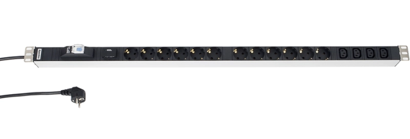 Hyperline SHT-12SH-4IEC-BF-2.5EU Блок розеток, 12 розеток + 4 х IEC320 C13, 16 A, автомат, защита от перенапряжения, шнур 2.5м (1006 x 44.4 x 44.4 мм)