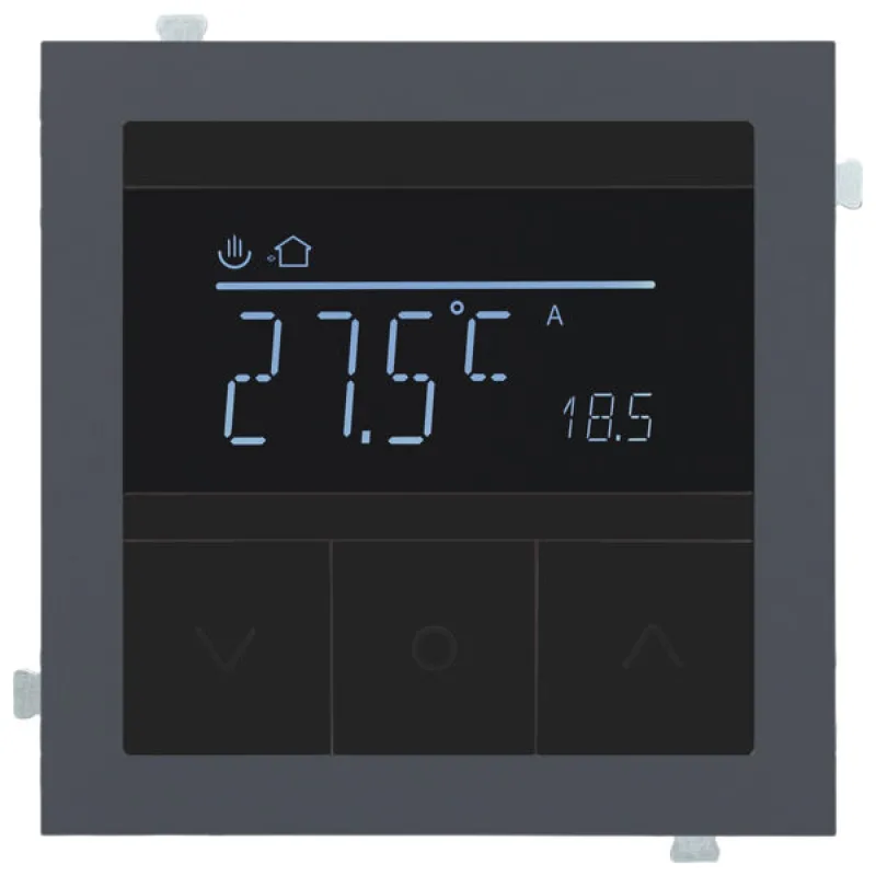Термостат для теплого пола состоит из трех компонентов — механизма, адаптера выбранного цвета и датчика теплого пола. Механизм термостата устанавливается в стандартный подрозетник с установочным диаметром 60 мм. Для окончательной сборки изделия необходимо добавить рамку с необходимым количеством постов.