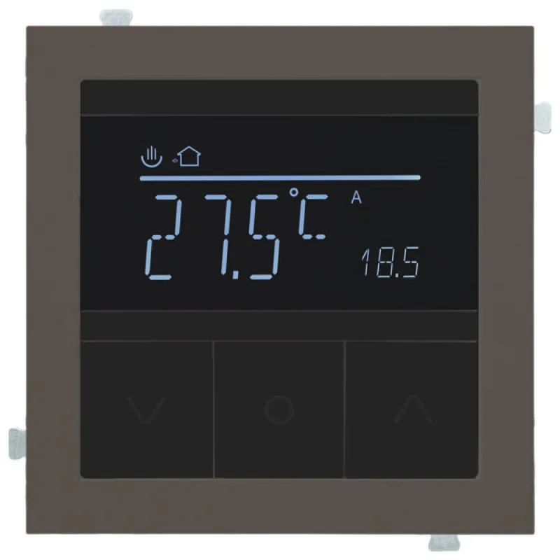 Термостат для теплого пола состоит из трех компонентов — механизма, адаптера выбранного цвета и датчика теплого пола. Механизм термостата устанавливается в стандартный подрозетник с установочным диаметром 60 мм. Для окончательной сборки изделия необходимо добавить рамку с необходимым количеством постов.