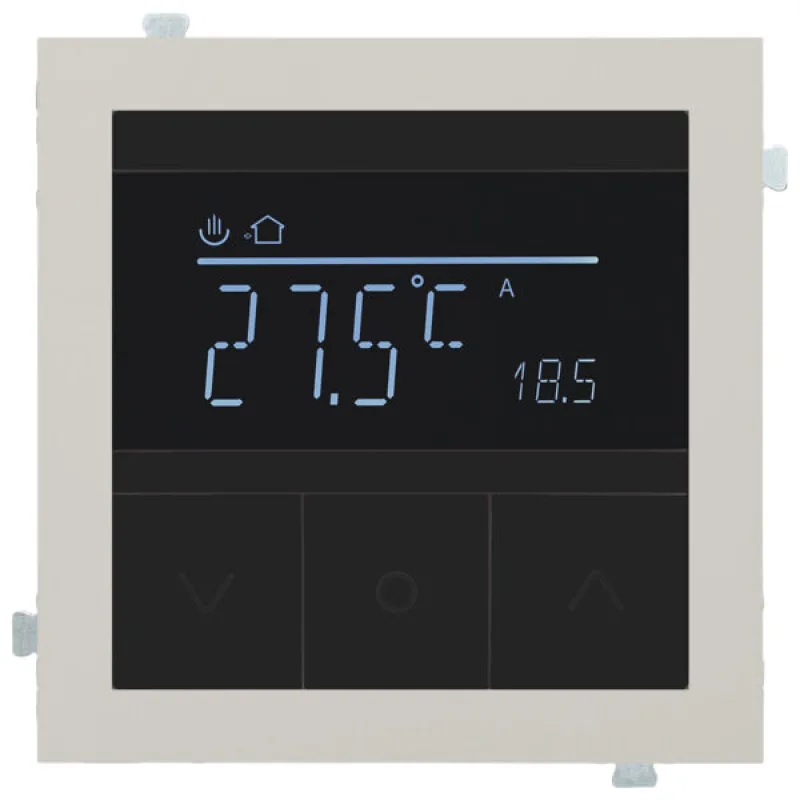 Термостат для теплого пола состоит из трех компонентов — механизма, адаптера выбранного цвета и датчика теплого пола. Механизм термостата устанавливается в стандартный подрозетник с установочным диаметром 60 мм. Для окончательной сборки изделия необходимо добавить рамку с необходимым количеством постов.