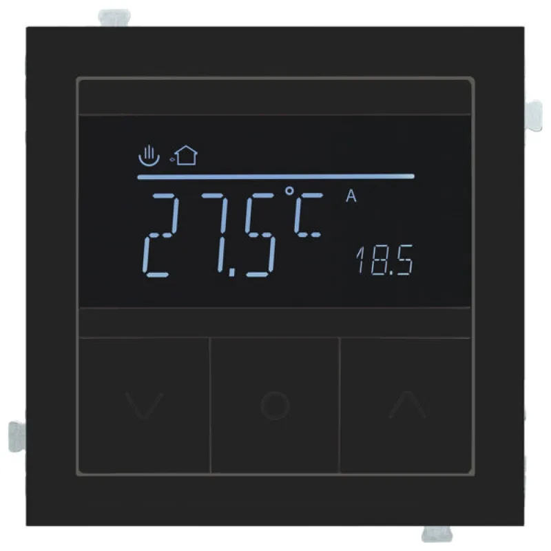 Термостат для теплого пола состоит из трех компонентов — механизма, адаптера выбранного цвета и датчика теплого пола. Механизм термостата устанавливается в стандартный подрозетник с установочным диаметром 60 мм. Для окончательной сборки изделия необходимо добавить рамку с необходимым количеством постов.