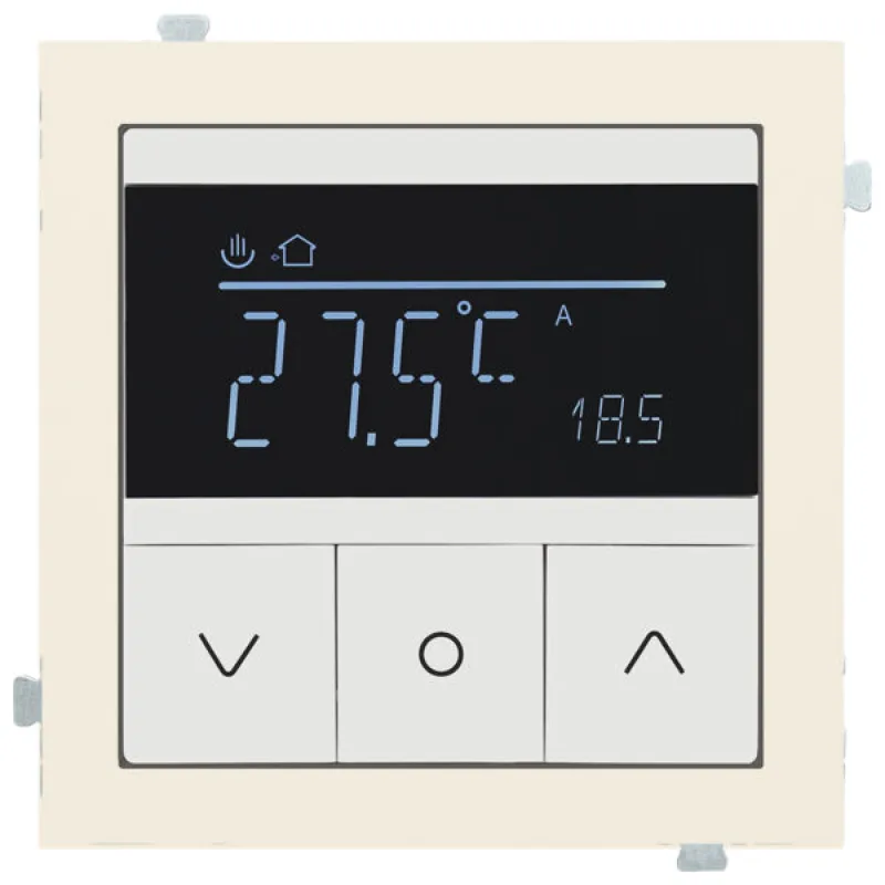 Термостат для теплого пола состоит из трех компонентов — механизма, адаптера выбранного цвета и датчика теплого пола. Механизм термостата устанавливается в стандартный подрозетник с установочным диаметром 60 мм. Для окончательной сборки изделия необходимо добавить рамку с необходимым количеством постов.