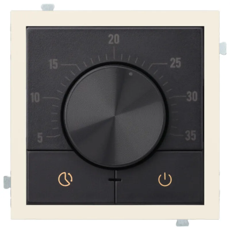 Термостат для теплого пола состоит из трех компонентов — механизма белого цвета, адаптера выбранного цвета и датчика теплого пола. Механизм термостата устанавливается в стандартный подрозетник с установочным диаметром 60 мм. Для окончательной сборки изделия необходимо добавить рамку с необходимым количеством постов.
