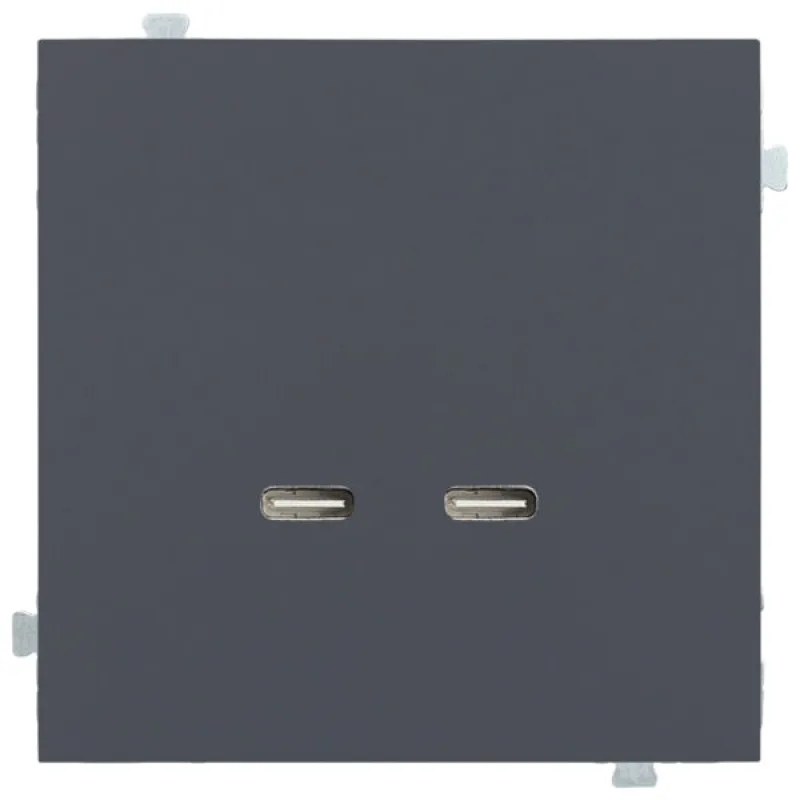 Зарядное устройство USB C/C состоит из двух компонентов — механизма с винтовым подключением и лицевой панели. Механизм зарядного устройства устанавливается в стандартный подрозетник с установочным диаметром 60 мм. Для окончательной сборки изделия необходимо добавить рамку с необходимым количеством постов.