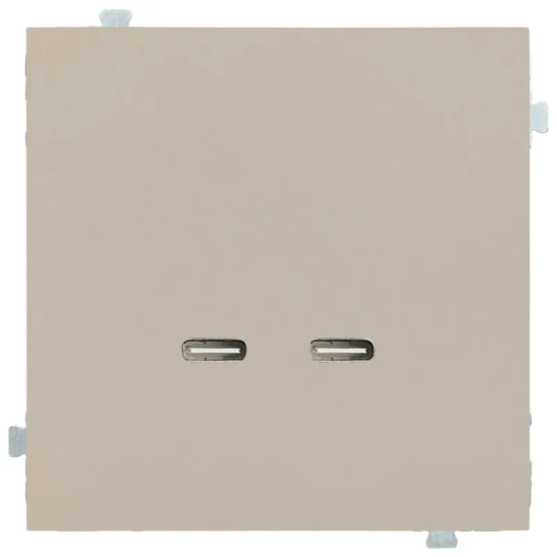 Зарядное устройство USB C/C состоит из двух компонентов — механизма с винтовым подключением и лицевой панели. Механизм зарядного устройства устанавливается в стандартный подрозетник с установочным диаметром 60 мм. Для окончательной сборки изделия необходимо добавить рамку с необходимым количеством постов.